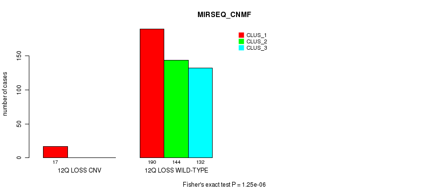 12q loss cnv correlated to 'CN_CNMF', 'METHLYATION_CNMF', 'MIRSEQ_CNMF', and 'MIRSEQ_CHIERARCHICAL'.