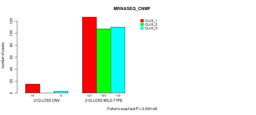 Figure S226. Get High-res Image Gene #77: '21q loss' versus Molecular Subtype #7: 'MRNASEQ_CNMF'