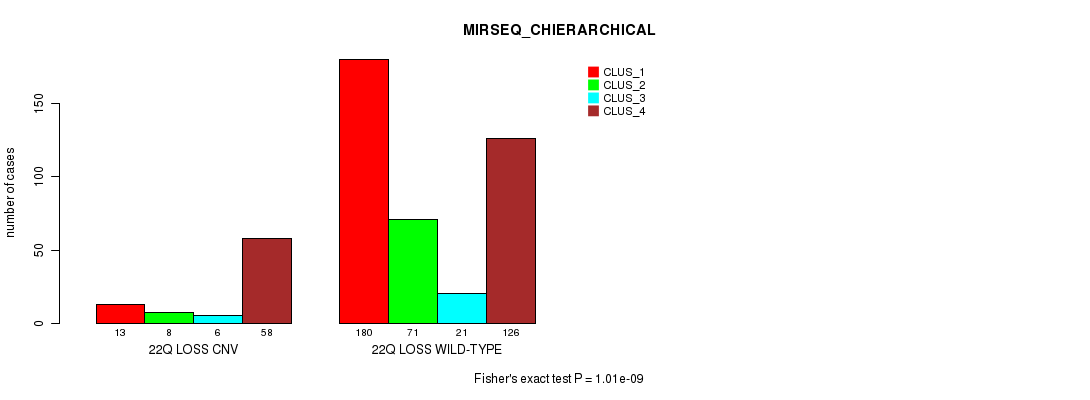 Table S233. Gene #78: '22q loss' versus Molecular Subtype #10: 'MIRSEQ_CHIERARCHICAL'