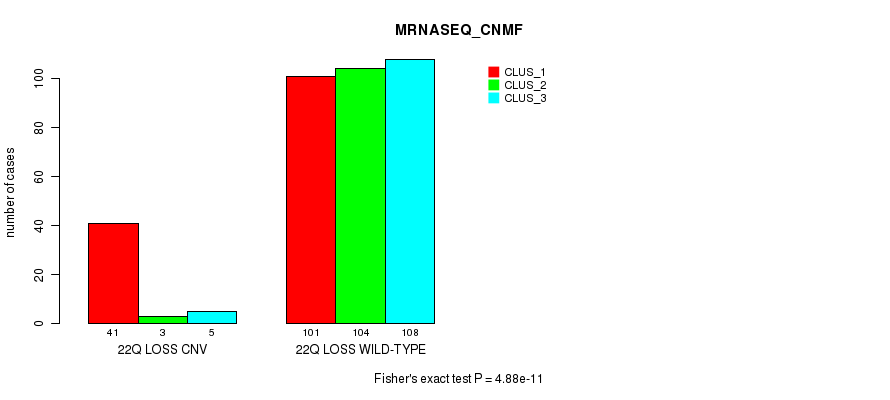 Figure S230. Get High-res Image Gene #78: '22q loss' versus Molecular Subtype #7: 'MRNASEQ_CNMF'