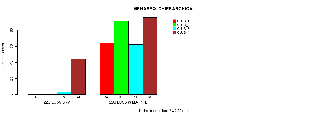 Figure S233. Get High-res Image Gene #78: '22q loss' versus Molecular Subtype #10: 'MIRSEQ_CHIERARCHICAL'