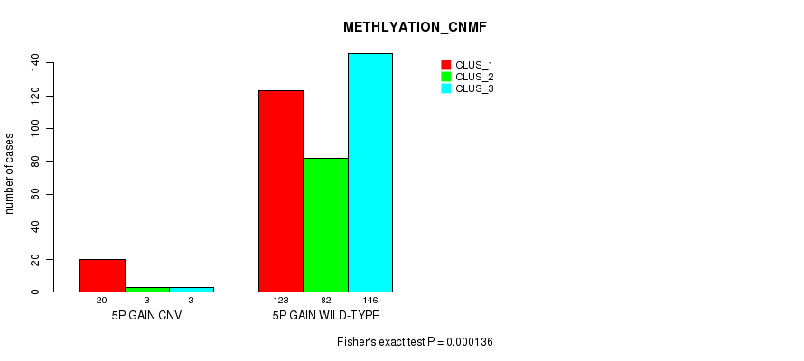 5p gain cnv correlated to 'CN_CNMF', 'METHLYATION_CNMF', 'MRNASEQ_CNMF', 'MRNASEQ_CHIERARCHICAL', 'MIRSEQ_CNMF', and 'MIRSEQ_CHIERARCHICAL'.