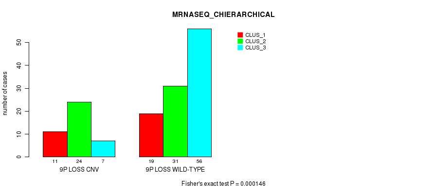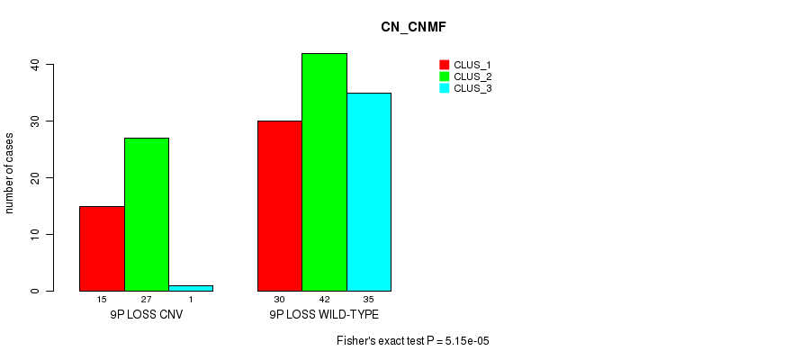 9p loss cnv correlated to 'CN_CNMF' and 'MRNASEQ_CHIERARCHICAL'.