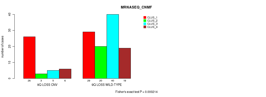 Table S14. Gene #55: '9q loss' versus Molecular Subtype #5: 'MRNASEQ_CNMF'