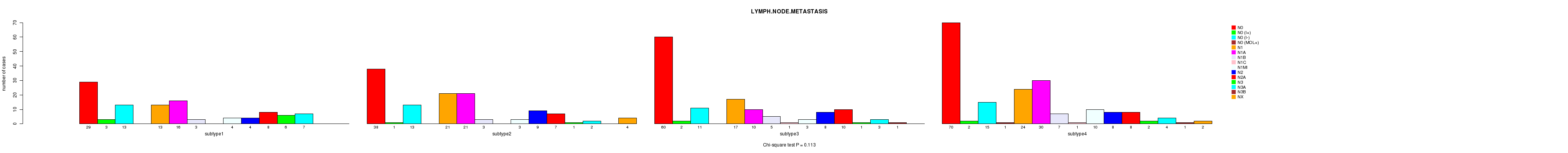 Figure S106. Get High-res Image Clustering Approach #12: 'MIRseq Mature cHierClus subtypes' versus Clinical Feature #7: 'LYMPH.NODE.METASTASIS'