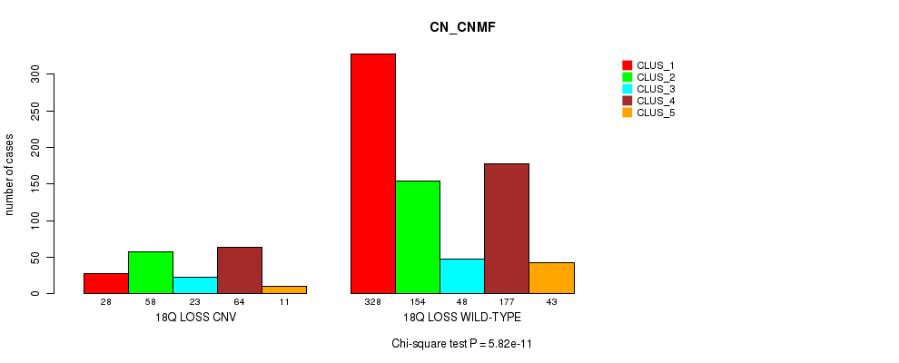 18q loss cnv correlated to 'CN_CNMF', 'METHLYATION_CNMF', and 'MRNASEQ_CNMF'.