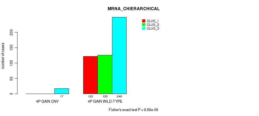 4p gain cnv correlated to 'MRNA_CNMF', 'MRNA_CHIERARCHICAL', 'CN_CNMF', 'MRNASEQ_CNMF', and 'MIRSEQ_CNMF'.