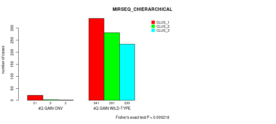 4q gain cnv correlated to 'MRNA_CNMF', 'MRNA_CHIERARCHICAL', 'CN_CNMF', 'MRNASEQ_CNMF', and 'MIRSEQ_CHIERARCHICAL'.