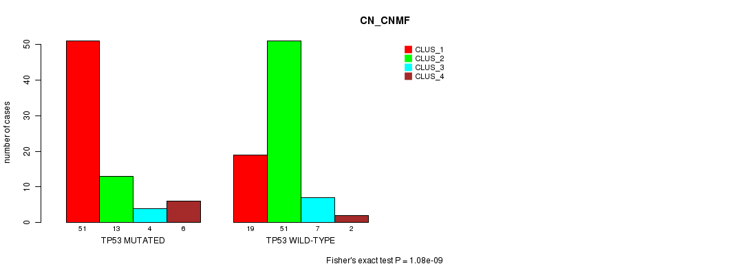 TP53 mutation correlated to 'MRNA_CNMF' and 'CN_CNMF'.
