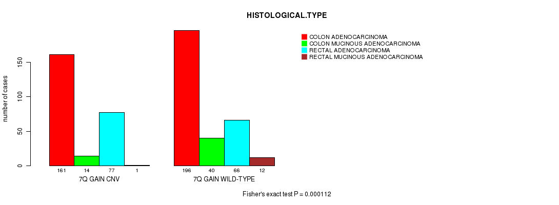 7q gain cnv correlated to 'HISTOLOGICAL.TYPE'.
