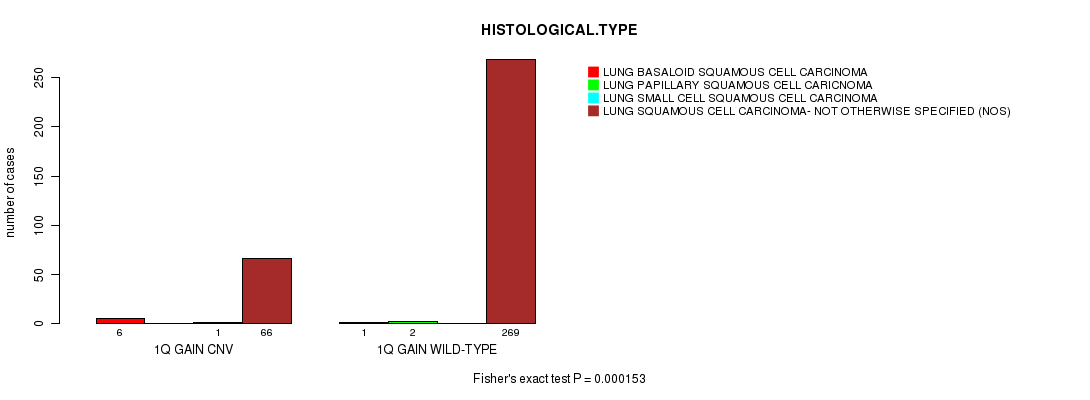 1q gain cnv correlated to 'HISTOLOGICAL.TYPE'.