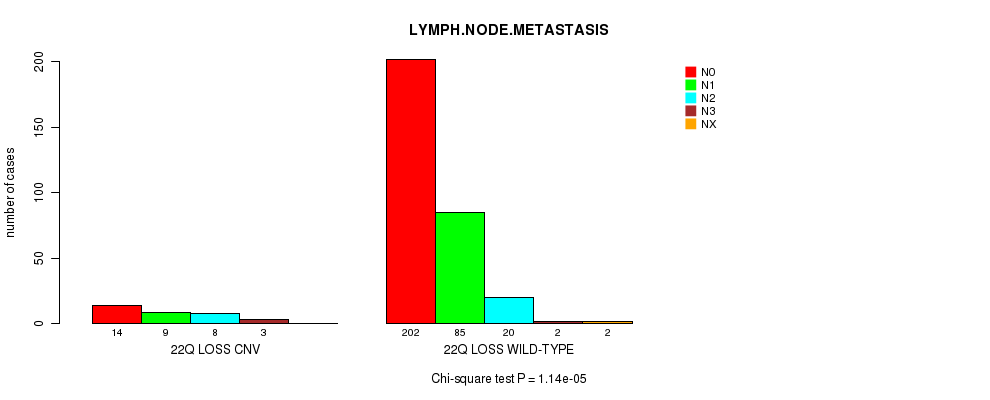 22q loss cnv correlated to 'LYMPH.NODE.METASTASIS'.