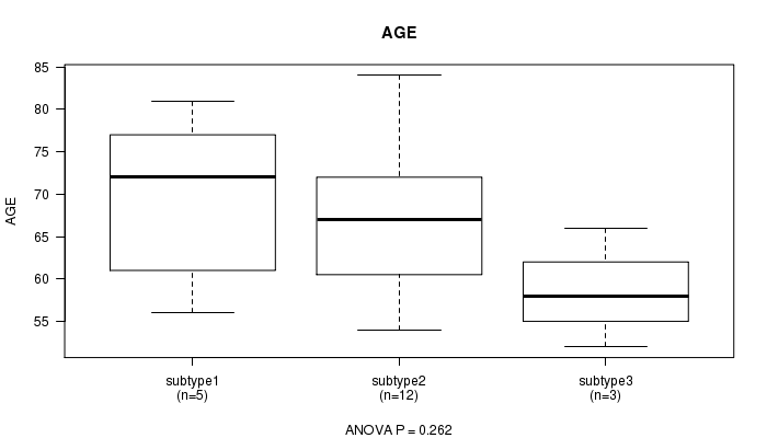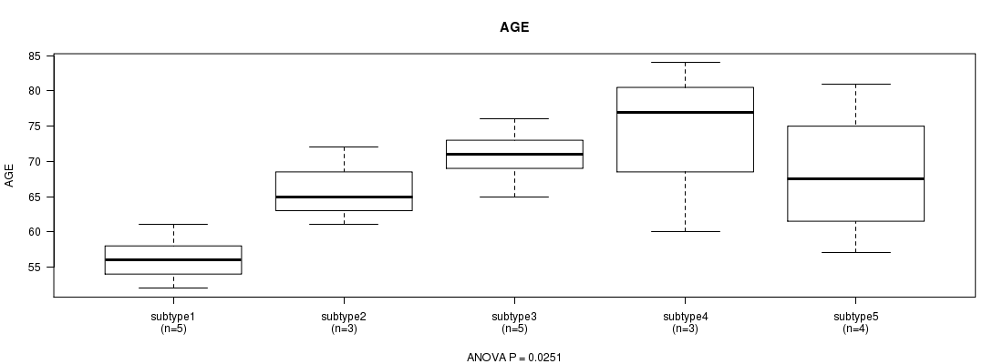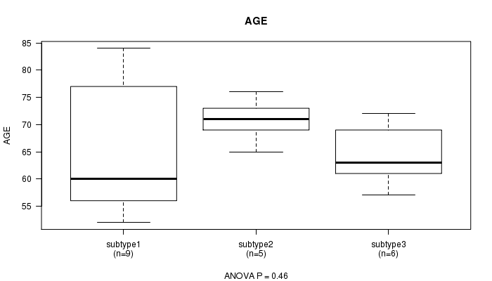 Figure S56. Get High-res Image Clustering Approach #7: 'MIRseq Mature CNMF subtypes' versus Clinical Feature #2: 'AGE'
