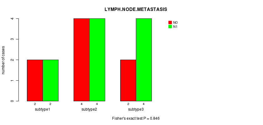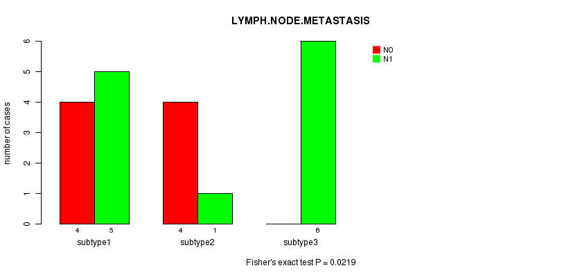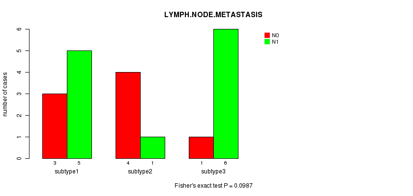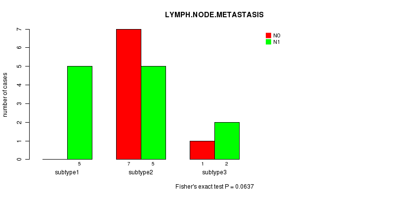 | LYMPH NODE METASTASIS | Fisher's exact test |