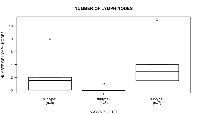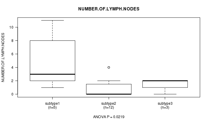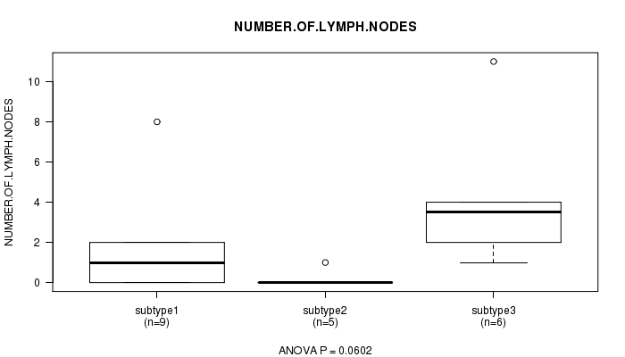 | NUMBER OF LYMPH NODES | ANOVA |