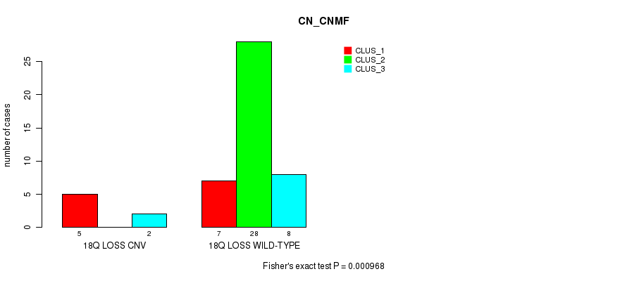 Table S4. Gene #17: '18q loss' versus Molecular Subtype #1: 'CN_CNMF'