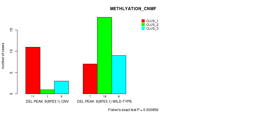 Figure S25. Get High-res Image Gene #22: 'Del Peak 11(9p21.3)' versus Molecular Subtype #2: 'METHLYATION_CNMF'