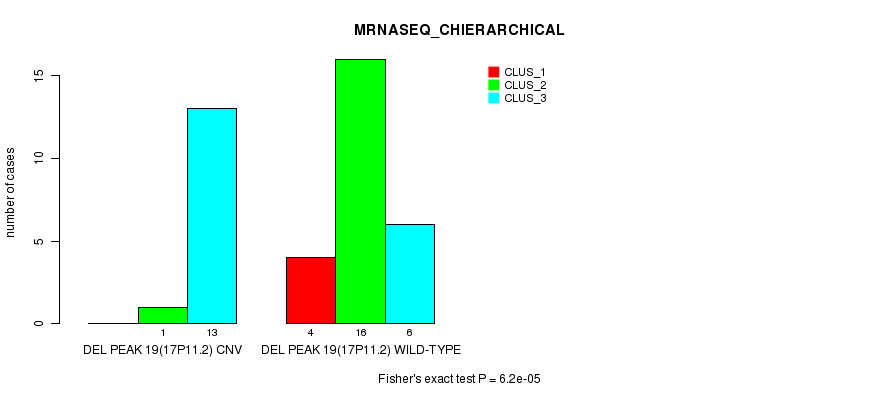 Figure S37. Get High-res Image Gene #30: 'Del Peak 19(17p11.2)' versus Molecular Subtype #4: 'MRNASEQ_CHIERARCHICAL'