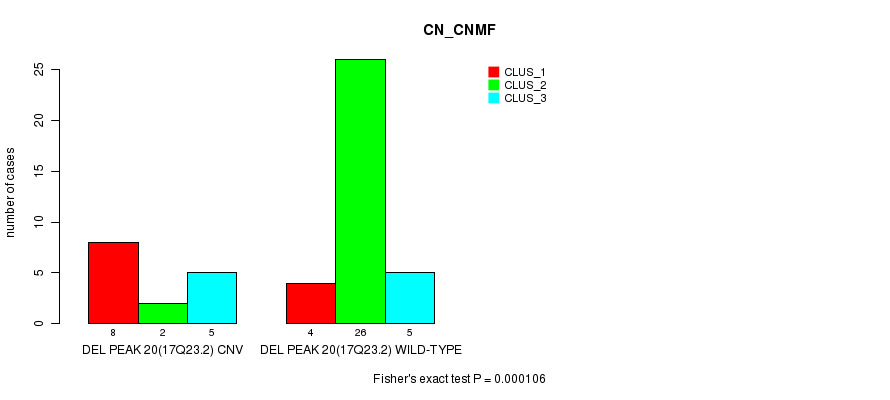 Del Peak 20(17q23.2) cnvs correlated to 'CN_CNMF', 'METHLYATION_CNMF', and 'MIRSEQ_MATURE_CNMF'.