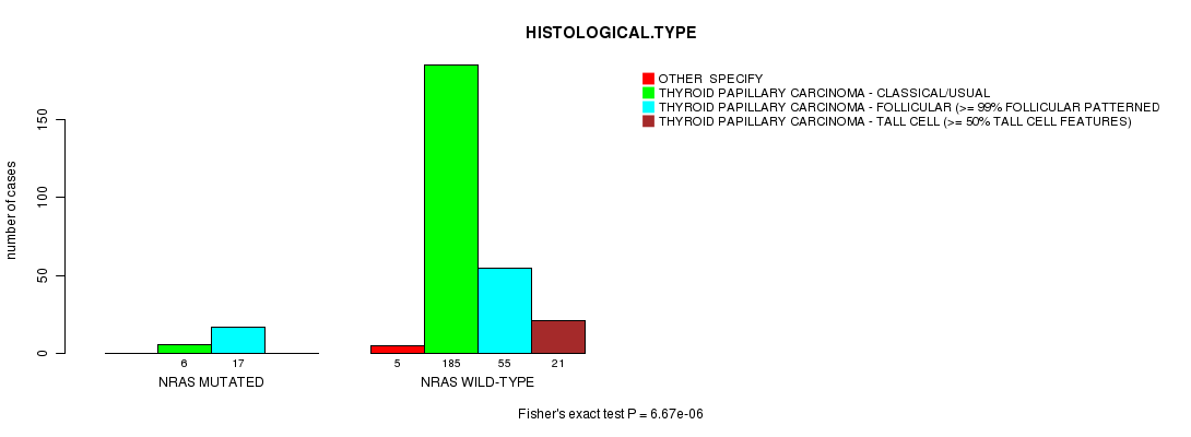 NRAS mutation correlated to 'HISTOLOGICAL.TYPE'.