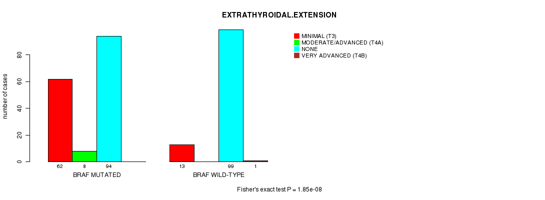 Figure S3. Get High-res Image Gene #2: 'BRAF MUTATION STATUS' versus Clinical Feature #8: 'EXTRATHYROIDAL.EXTENSION'
