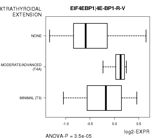 Figure S5. Get High-res Image As an example, this figure shows the association of EIF4EBP1|4E-BP1-R-V to 'EXTRATHYROIDAL.EXTENSION'. P value = 3.5e-05 with ANOVA analysis.