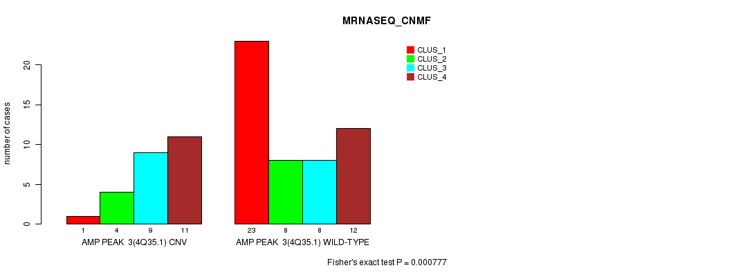 Amp Peak 3(4q35.1) cnvs correlated to 'CN_CNMF' and 'MRNASEQ_CNMF'.