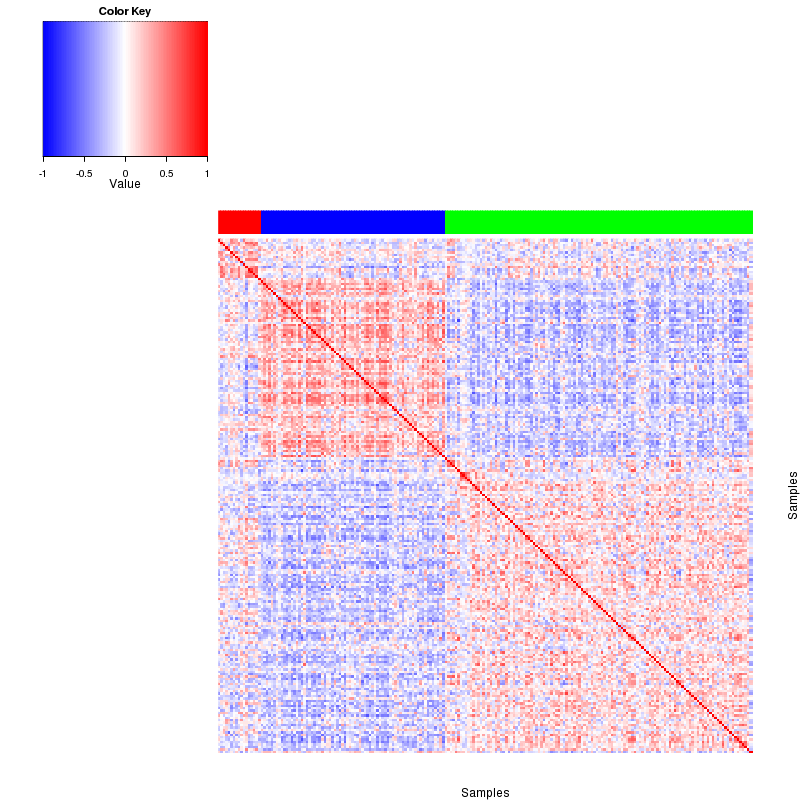 Figure 3. Get High-res Image The consensus matrix after clustering shows 3 clusters with limited overlap between clusters.