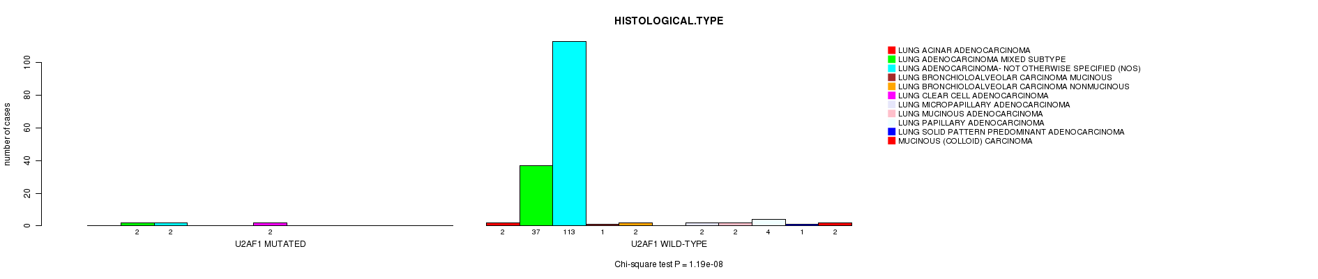 U2AF1 mutation correlated to 'HISTOLOGICAL.TYPE'.
