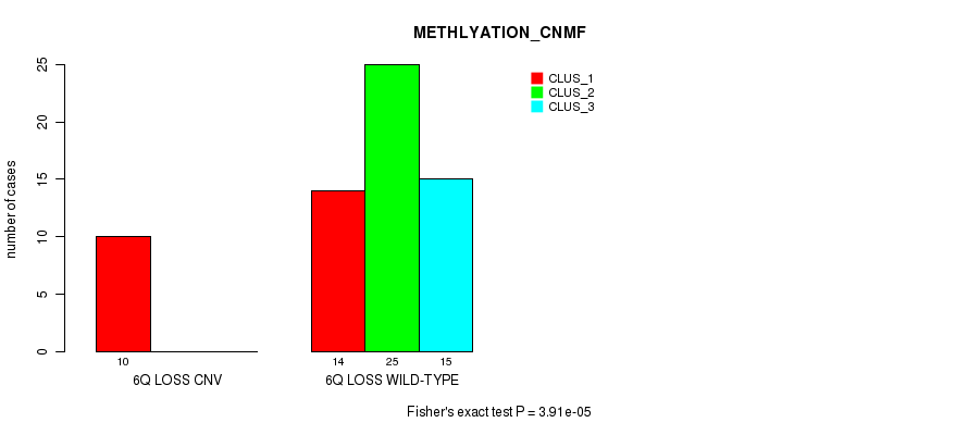 6q loss cnv correlated to 'METHLYATION_CNMF' and 'MRNASEQ_CHIERARCHICAL'.