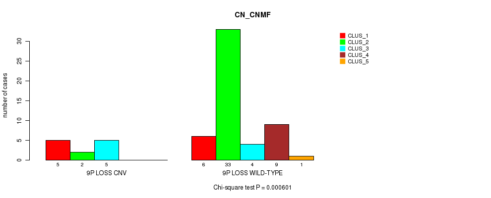 9p loss cnv correlated to 'CN_CNMF' and 'METHLYATION_CNMF'.
