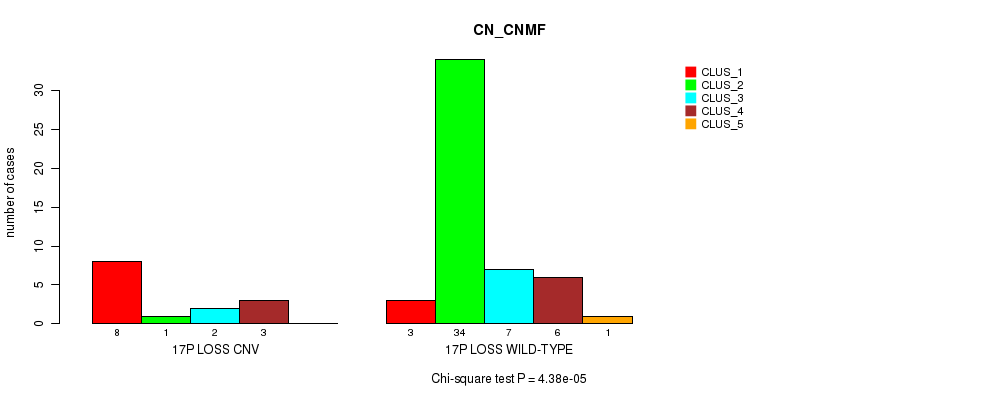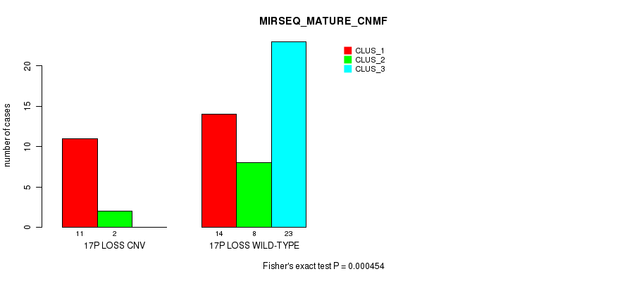 17p loss cnv correlated to 'CN_CNMF', 'METHLYATION_CNMF', and 'MIRSEQ_MATURE_CNMF'.