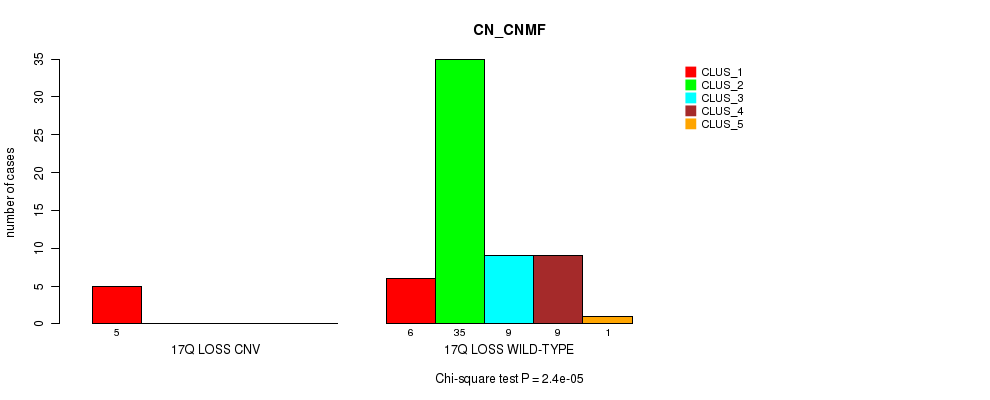 Table S9. Gene #21: '17q loss' versus Molecular Subtype #1: 'CN_CNMF'