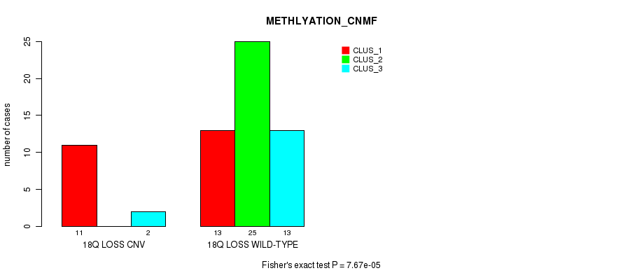 Table S10. Gene #23: '18q loss' versus Molecular Subtype #2: 'METHLYATION_CNMF'