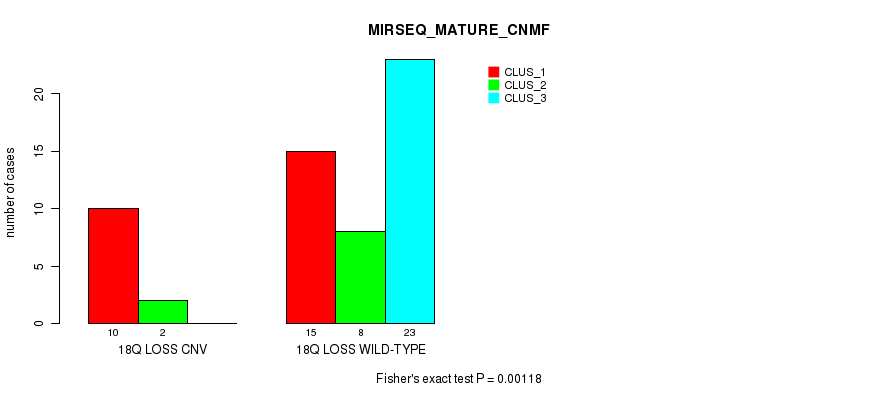 18q loss cnv correlated to 'METHLYATION_CNMF' and 'MIRSEQ_MATURE_CNMF'.