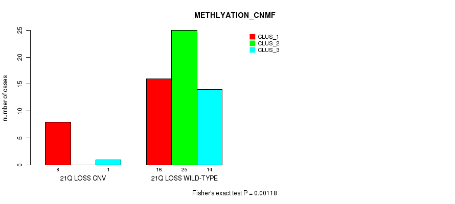 Table S13. Gene #24: '21q loss' versus Molecular Subtype #2: 'METHLYATION_CNMF'