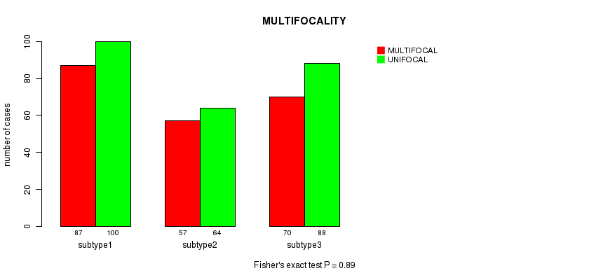 Figure S149. Get High-res Image Clustering Approach #10: 'MIRseq Mature cHierClus subtypes' versus Clinical Feature #14: 'MULTIFOCALITY'