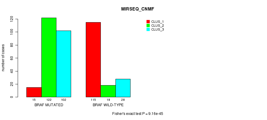Figure S15. Get High-res Image Gene #2: 'BRAF MUTATION STATUS' versus Clinical Feature #7: 'MIRSEQ_CNMF'