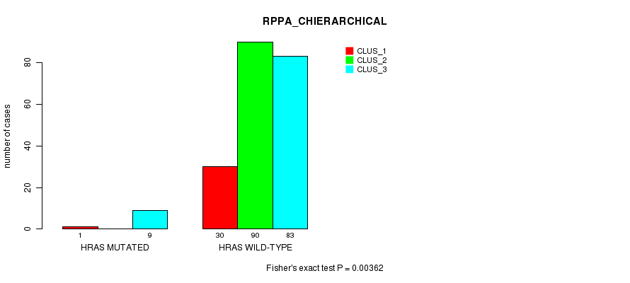 Figure S22. Get High-res Image Gene #3: 'HRAS MUTATION STATUS' versus Clinical Feature #4: 'RPPA_CHIERARCHICAL'