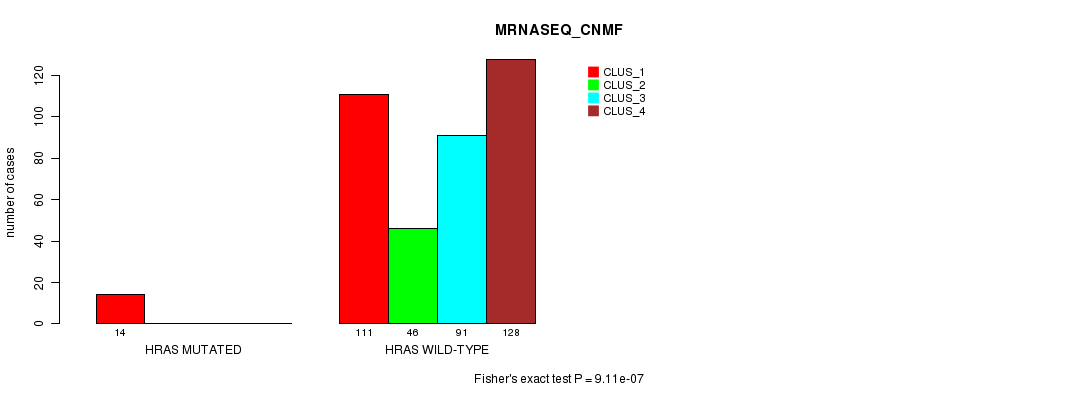 Figure S23. Get High-res Image Gene #3: 'HRAS MUTATION STATUS' versus Clinical Feature #5: 'MRNASEQ_CNMF'