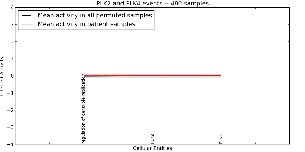 Figure S129. Get High-res Image This plot shows pathway concept perturbations across all samples against a permutation model. The concepts along the x-axis are sorted by lowest to highest mean activity for the real patient samples. Mean inferred activities are plotted along the y-axis as a colored band showing the average level and one standard deviation range. Real samples are shown in red and permuted samples in black.