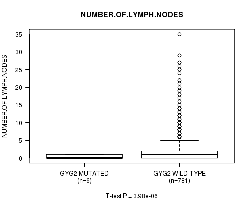 GYG2 mutation correlated to 'NUMBER.OF.LYMPH.NODES'.