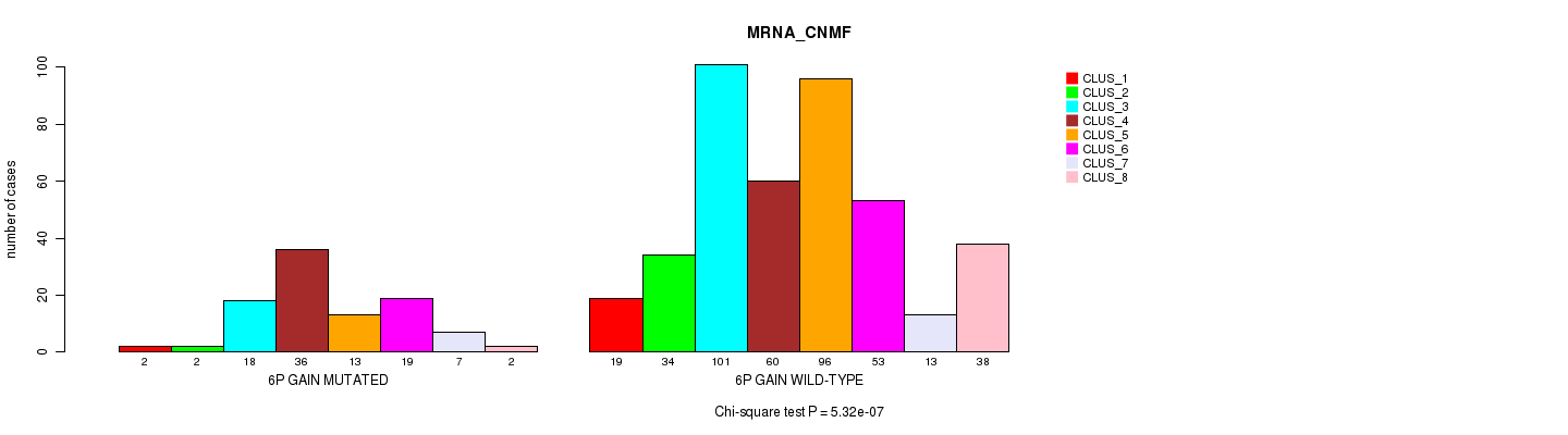 6p gain cnv correlated to 'MRNA_CNMF', 'MRNA_CHIERARCHICAL', 'CN_CNMF', 'METHLYATION_CNMF', 'RPPA_CNMF', 'MRNASEQ_CNMF', 'MRNASEQ_CHIERARCHICAL', 'MIRSEQ_CNMF', 'MIRSEQ_CHIERARCHICAL', 'MIRSEQ_MATURE_CNMF', and 'MIRSEQ_MATURE_CHIERARCHICAL'.