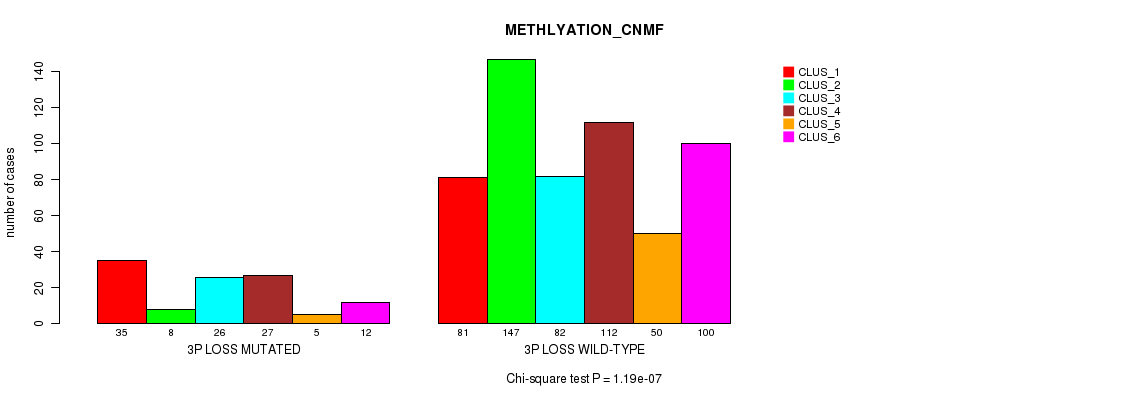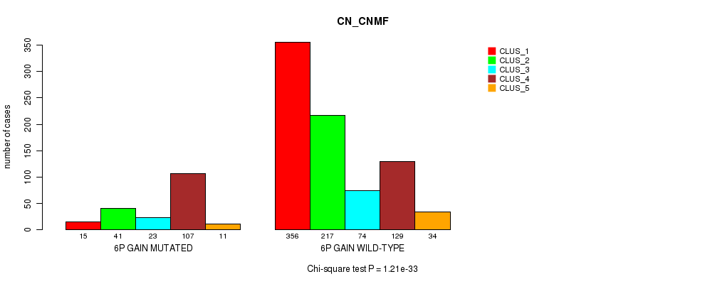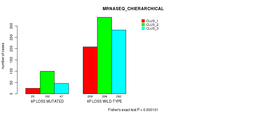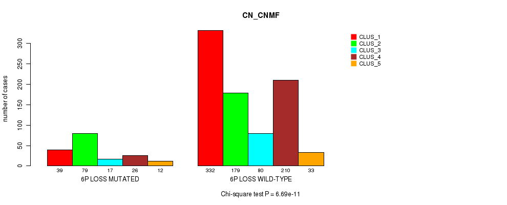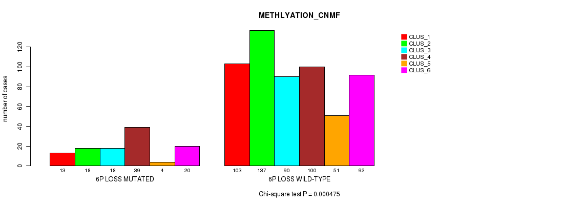 6p loss cnv correlated to 'CN_CNMF', 'METHLYATION_CNMF', and 'MRNASEQ_CHIERARCHICAL'.