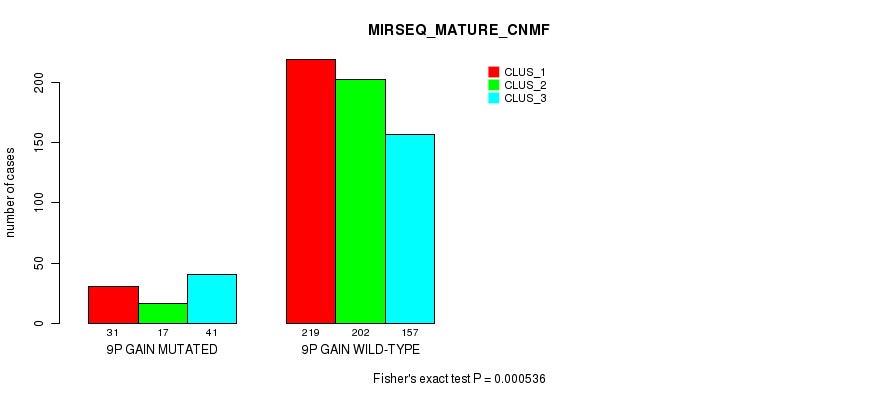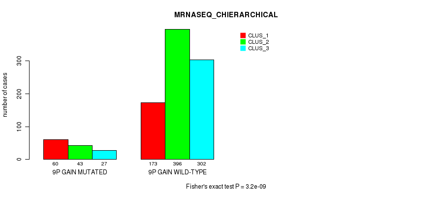 9p gain cnv correlated to 'MRNA_CNMF', 'MRNA_CHIERARCHICAL', 'CN_CNMF', 'METHLYATION_CNMF', 'RPPA_CHIERARCHICAL', 'MRNASEQ_CNMF', 'MRNASEQ_CHIERARCHICAL', 'MIRSEQ_CNMF', 'MIRSEQ_CHIERARCHICAL', 'MIRSEQ_MATURE_CNMF', and 'MIRSEQ_MATURE_CHIERARCHICAL'.