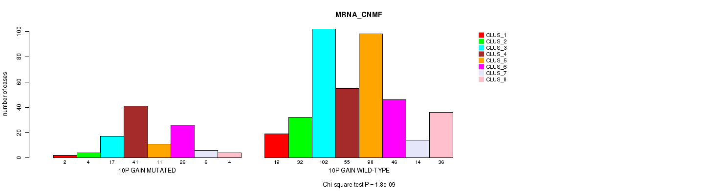 10p gain cnv correlated to 'MRNA_CNMF', 'MRNA_CHIERARCHICAL', 'CN_CNMF', 'METHLYATION_CNMF', 'RPPA_CNMF', 'RPPA_CHIERARCHICAL', 'MRNASEQ_CNMF', 'MRNASEQ_CHIERARCHICAL', 'MIRSEQ_CNMF', 'MIRSEQ_CHIERARCHICAL', 'MIRSEQ_MATURE_CNMF', and 'MIRSEQ_MATURE_CHIERARCHICAL'.