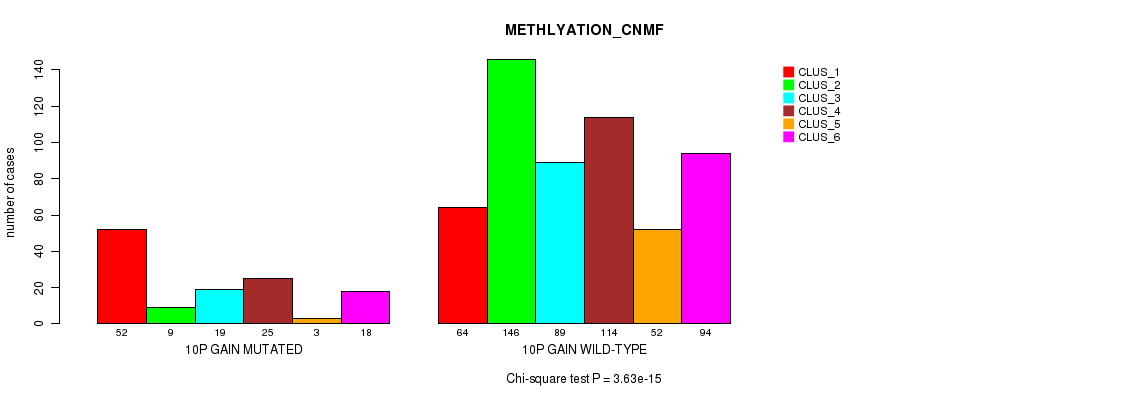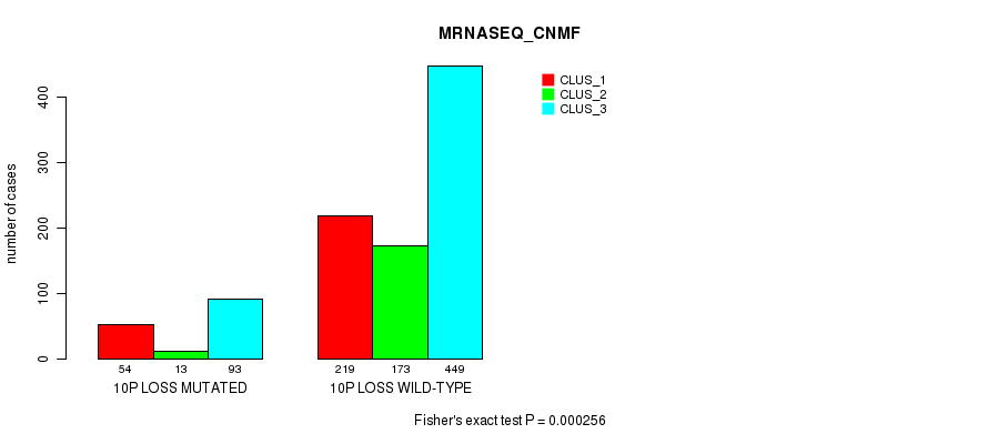 10p loss cnv correlated to 'CN_CNMF', 'METHLYATION_CNMF', and 'MRNASEQ_CNMF'.