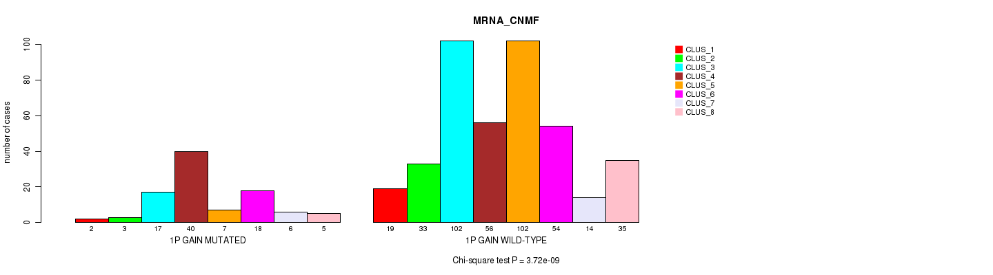 1p gain cnv correlated to 'MRNA_CNMF', 'MRNA_CHIERARCHICAL', 'CN_CNMF', 'METHLYATION_CNMF', 'RPPA_CNMF', 'RPPA_CHIERARCHICAL', 'MRNASEQ_CNMF', 'MRNASEQ_CHIERARCHICAL', 'MIRSEQ_CNMF', 'MIRSEQ_CHIERARCHICAL', 'MIRSEQ_MATURE_CNMF', and 'MIRSEQ_MATURE_CHIERARCHICAL'.