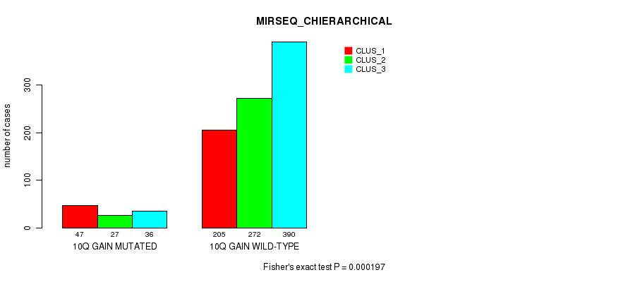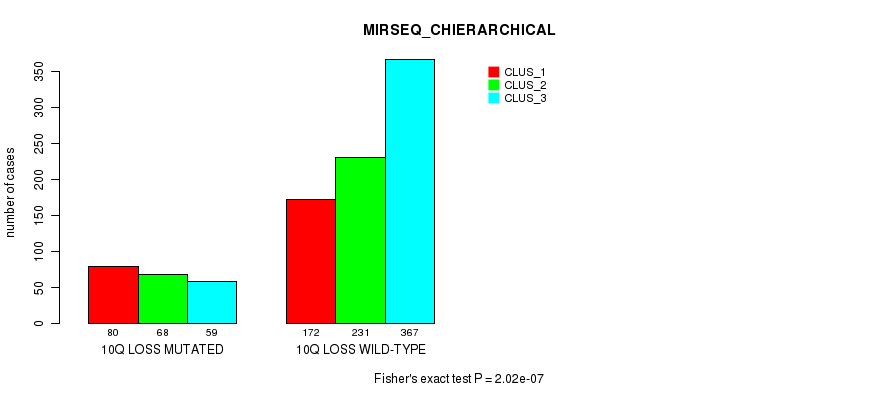 Table S543. Gene #77: '20q loss' versus Molecular Subtype #10: 'MIRSEQ_CHIERARCHICAL'