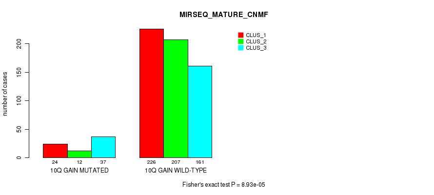 10q gain cnv correlated to 'CN_CNMF', 'MRNASEQ_CHIERARCHICAL', 'MIRSEQ_CNMF', 'MIRSEQ_CHIERARCHICAL', and 'MIRSEQ_MATURE_CNMF'.